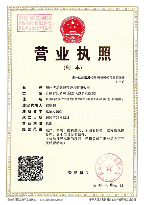 鄭州博爾德磨料磨具有限公司質(zhì)量管理體系認證 GB/T19001-2016/ISO9001:2015